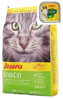 Josera SensiCat je šetrné a chutné krmivo s drůbežím a rýží. Především pro kočky citlivé na krmivo je tato receptura jako stvořená. Majitelé koček mohou svým miláčkům dopřát zpestření na jejich jídelníčku. Protože krmivo neobsahuje ryby, které mají velmi intenzivní chuť, může se kuřecí chuť optimálně vyvinout.