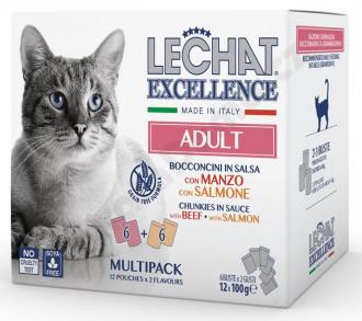 Monge Cat kaps. Excellence Multipack Adult Beef/Salmon 12×100g + balení kapsiček ZDARMA