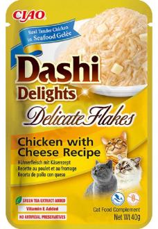 Složení: vývar z hřebenatky 53,4%, kuře 43,4%, sýr 1,6%, vločky z tuňáka pruhovaného, tapioka (sušená)