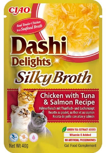 Dashi kapsičky obsahují lahodný vývar, který je vyrobený z bonito vloček ze sušeného tuňáka uloveného ve volné přírodě a je smíchaný s kuřecími kousky pro zvýšení obsahu bílkovin. Jsou skvělé doplňkové krmivo s vysokým obsahem vody - zpestřete stravu vašim kočičích kamarádům kapsičkou s až 93% vlhkostí. Jednoduše lahodné - čerstvé ingredience s přidaným vitamínem E pro podporu jejich imunitního systému a extraktem ze zeleného čaje jako přírodního antioxidantu.