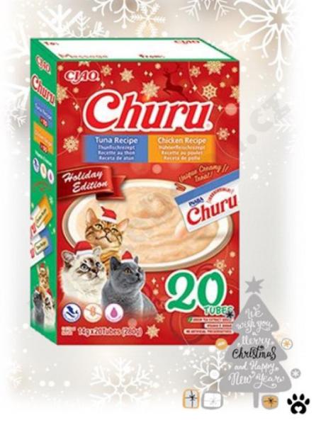 Balení obsahuje: 20 pamlsků Churu (10× tuňák a 10× kuře)